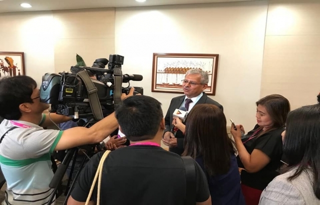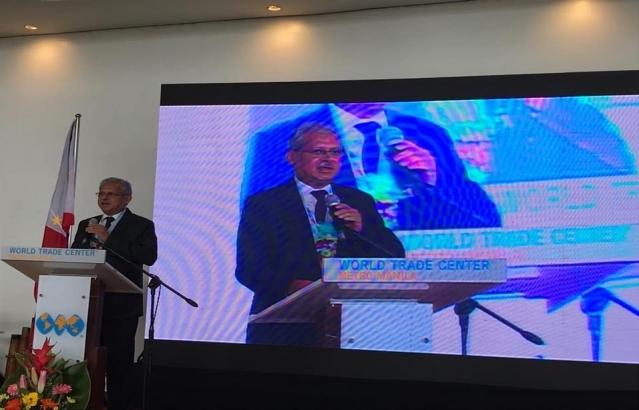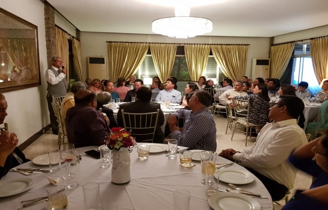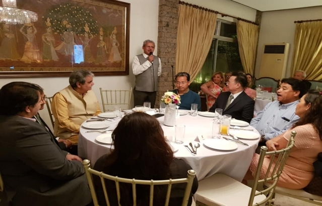 Amb. Jaideep Mazumdar making his opening remarks during a dinner at India House hosted in honour of the Indian Awardees of the 2018 Ramon Magsaysay Awards, Mr. Sonam Wangchuk and Dr. Bharat Vatwani.Various Ambassadors, members of diplomatic and business community, officials of the Government of the Philippines attended the event and interacted with the winners.