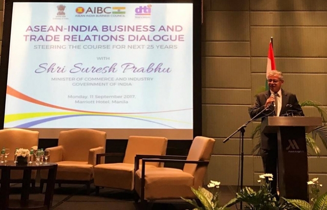 Ambassador Jaideep Mazumdar addressing ASEAN-India Business and Trade Relations Dialogue on the sidelines of 49th ASEAN-India Economic Ministers'Meeting in Manila, Philippines on 11th September 2017.