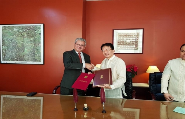 Ambassador Jaideep Mazumdar with Chancellor Michael Lim Tan at the University of Philippines, Diliman during the signing ceremony of the ICCR chair on Indian studies.