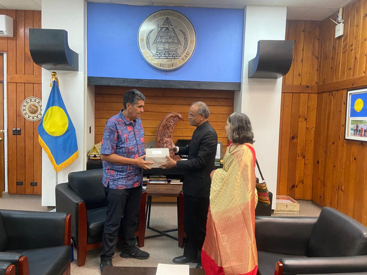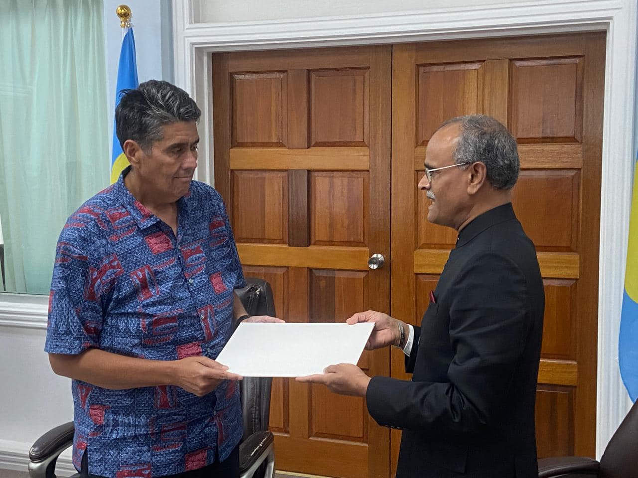 Ambassador Shri Harsh Kumar Jain presented his credentials to H.E. Mr. Surangel S. Whipps Jr., President of the Republic of Palau on 11 December 2024, accrediting him as the Ambassador Extraordinary and Plenipotentiary of India to the Republic of Palau