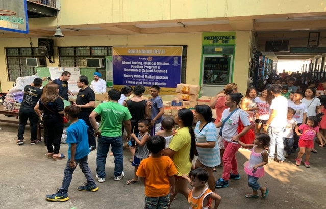 As a part of the celebration of Guru Nanak Dev Ji's 550th birth anniversary, the Embassy of India in Manila in cooperation with the Rotary Club of Makati Nielsen successfully conducted an outreach program including a blood-letting activity, feeding program and donation of medicines & school supplies on 22 May 2019. Citizens and children from Multinational Village, Barangay,Moonwalk, Paranaque City benefited from the program.