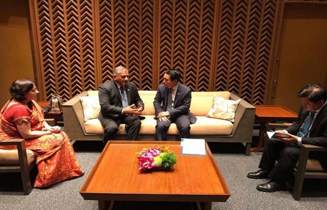 Gen. (Dr.) V.K. Singh (Retd), Minister State for External Affairs in a pull aside with Foreign Minister of Lao PDR, H.E. Mr. Saleumxay Kommasith, 07th August 2017, Manila