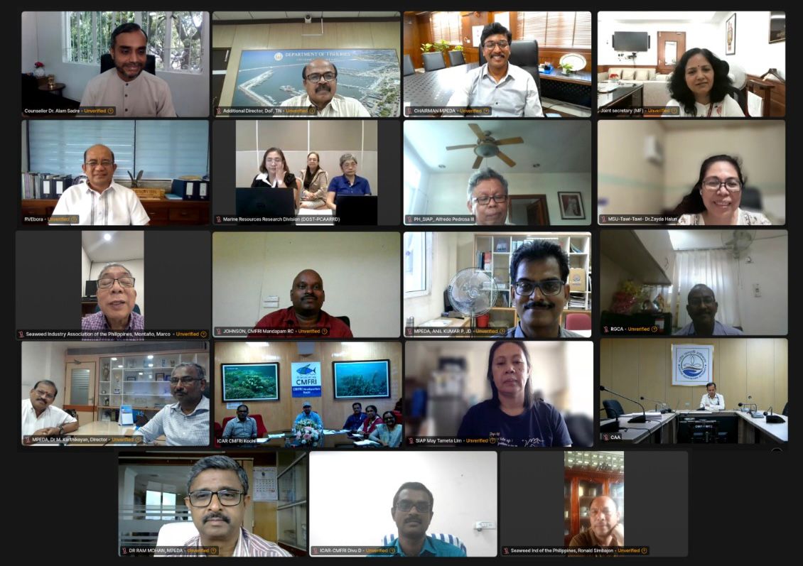Head of the E&C Wing Counsellor Dr. Sadre Alam convened the Inaugural India-Philippines Seaweed Sector Stakeholders' Consultation Meeting comprising Senior Representatives from the Government, Academia and Industry to explore opportunities for mutually beneficial collaboration and exchanges (Virtual, 04 October 2024)