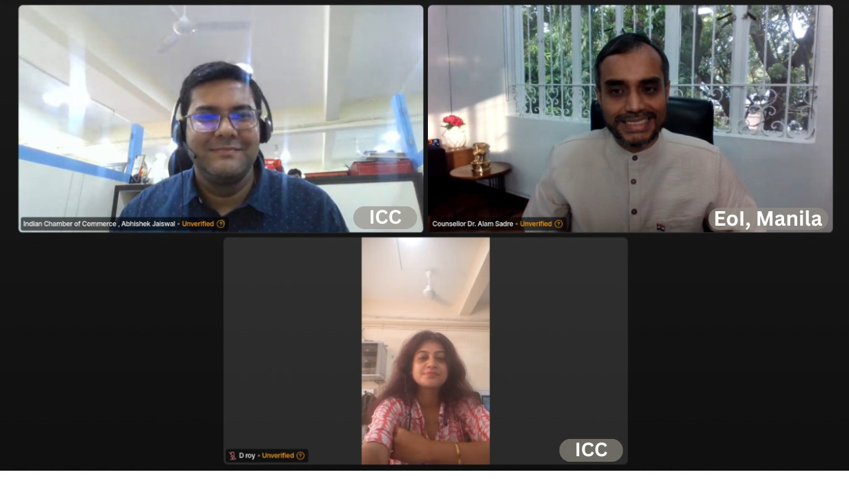 Head of the E&C Wing Counsellor Dr. Sadre Alam met with the Indian Chamber of Commerce (ICC) to discuss potential participation in key upcoming trade events and expos in the Philippines (Virtual, 04 October 2024)
