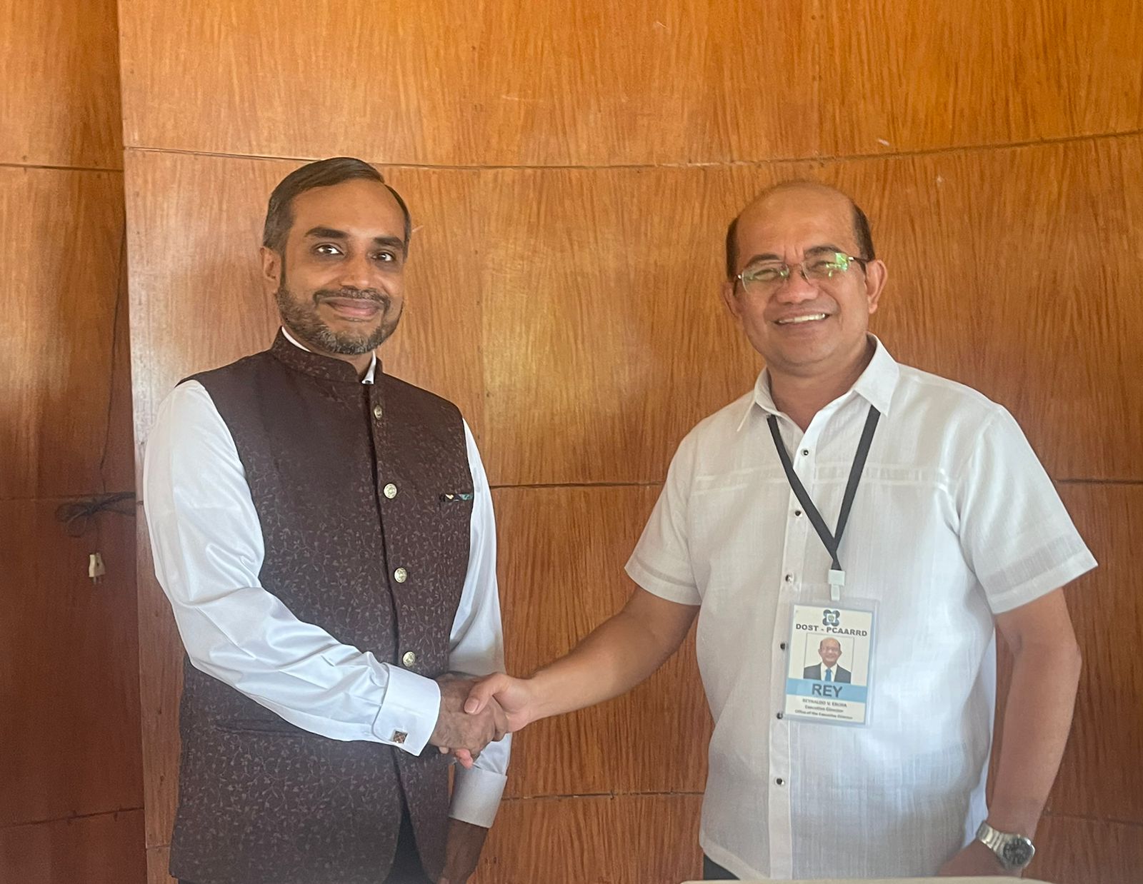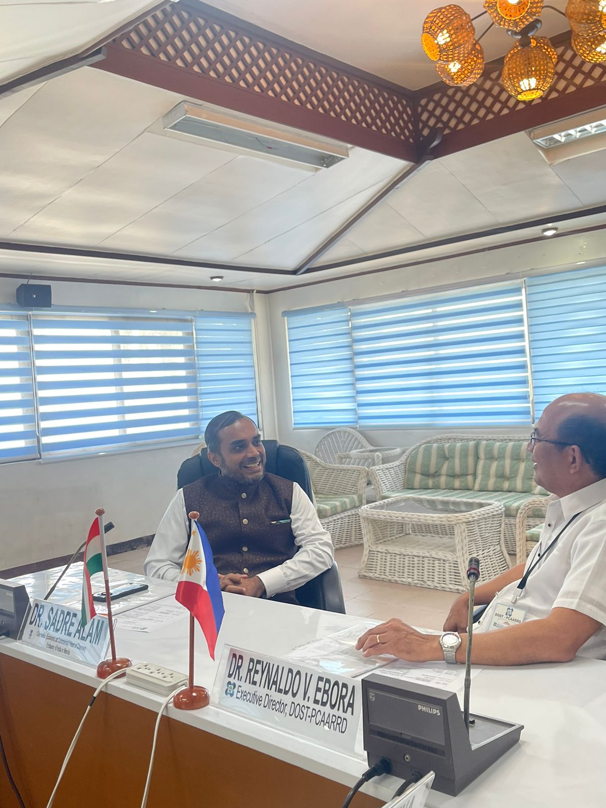 Head of the Eco & Com Wing Counsellor Dr. Sadre Alam met with Dr. Reynaldo Ebora, Executive Director, Philippine Council for Agriculture, Aquatic and Natural Resources Research and Development (PCAARRD), Department of Science and Technology (DOST), and explored avenues for mutually beneficial collaboration in the areas of Agriculture, Fisheries & Natural Resources (Laguna, 19 August 2024)