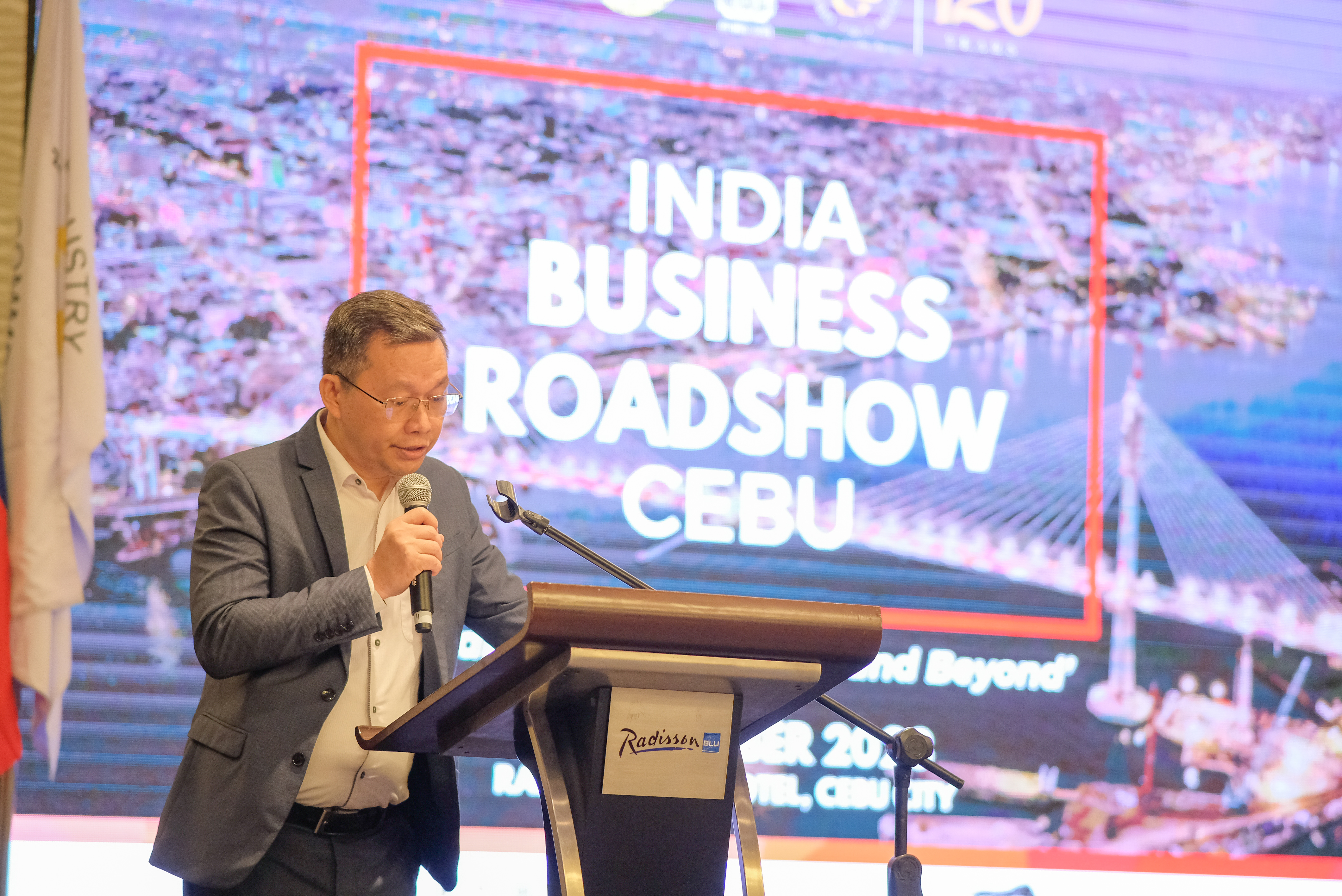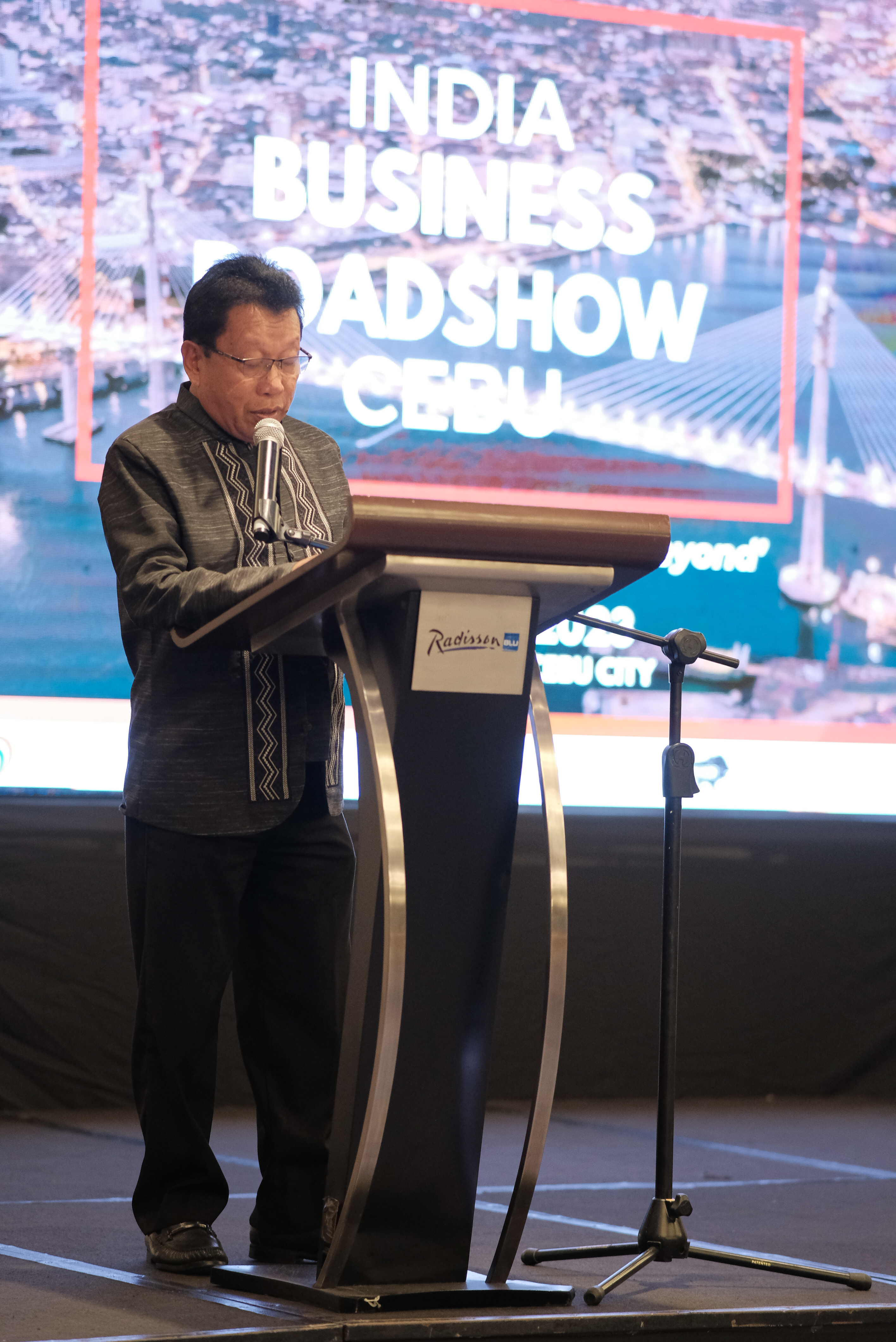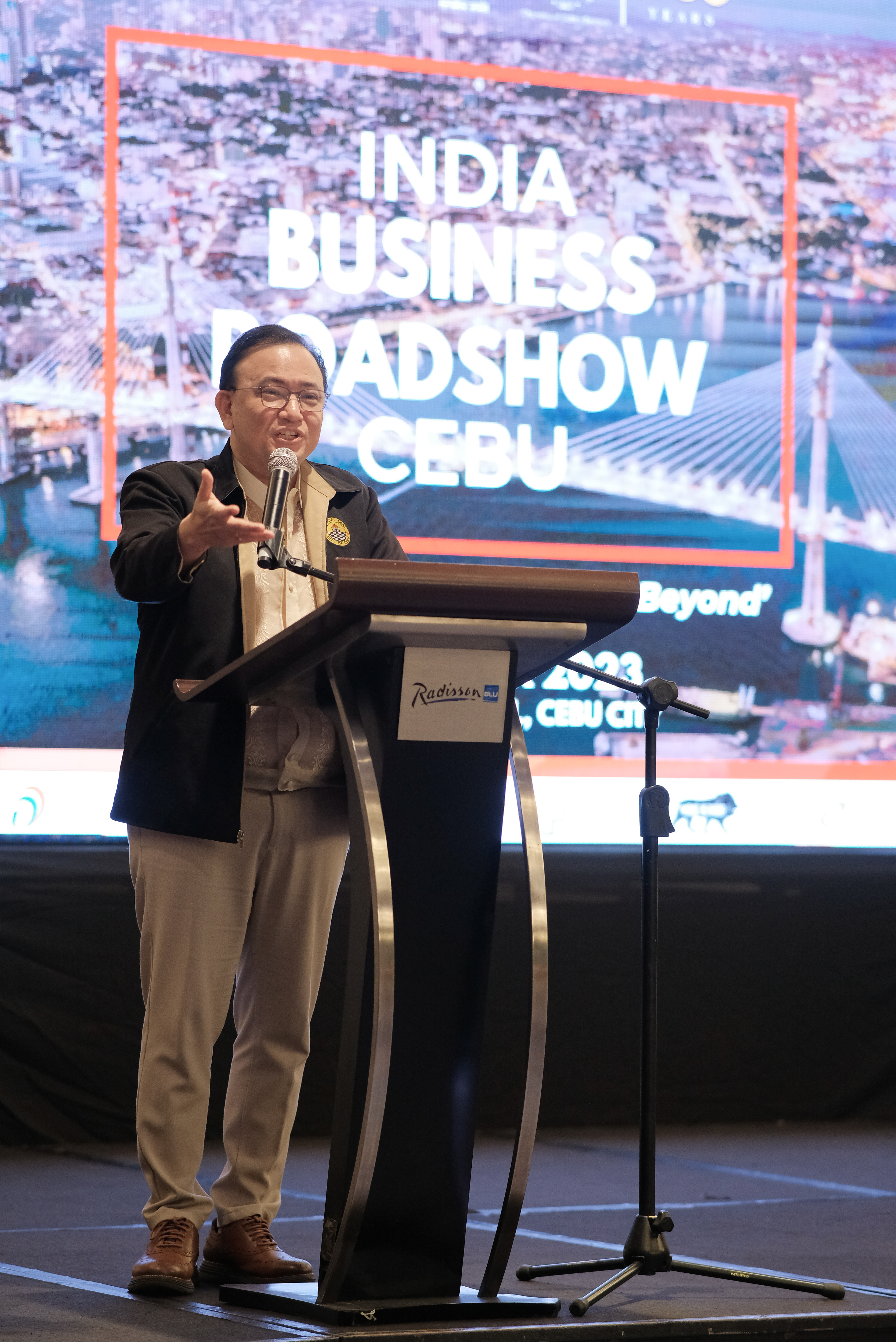 OIC President Wendell D. Ganhinhin of the Cebu Chamber of Commerce & Industry delivering his Welcome Remarks, India Business Roadshow – Cebu Edition, 15 November 2023.