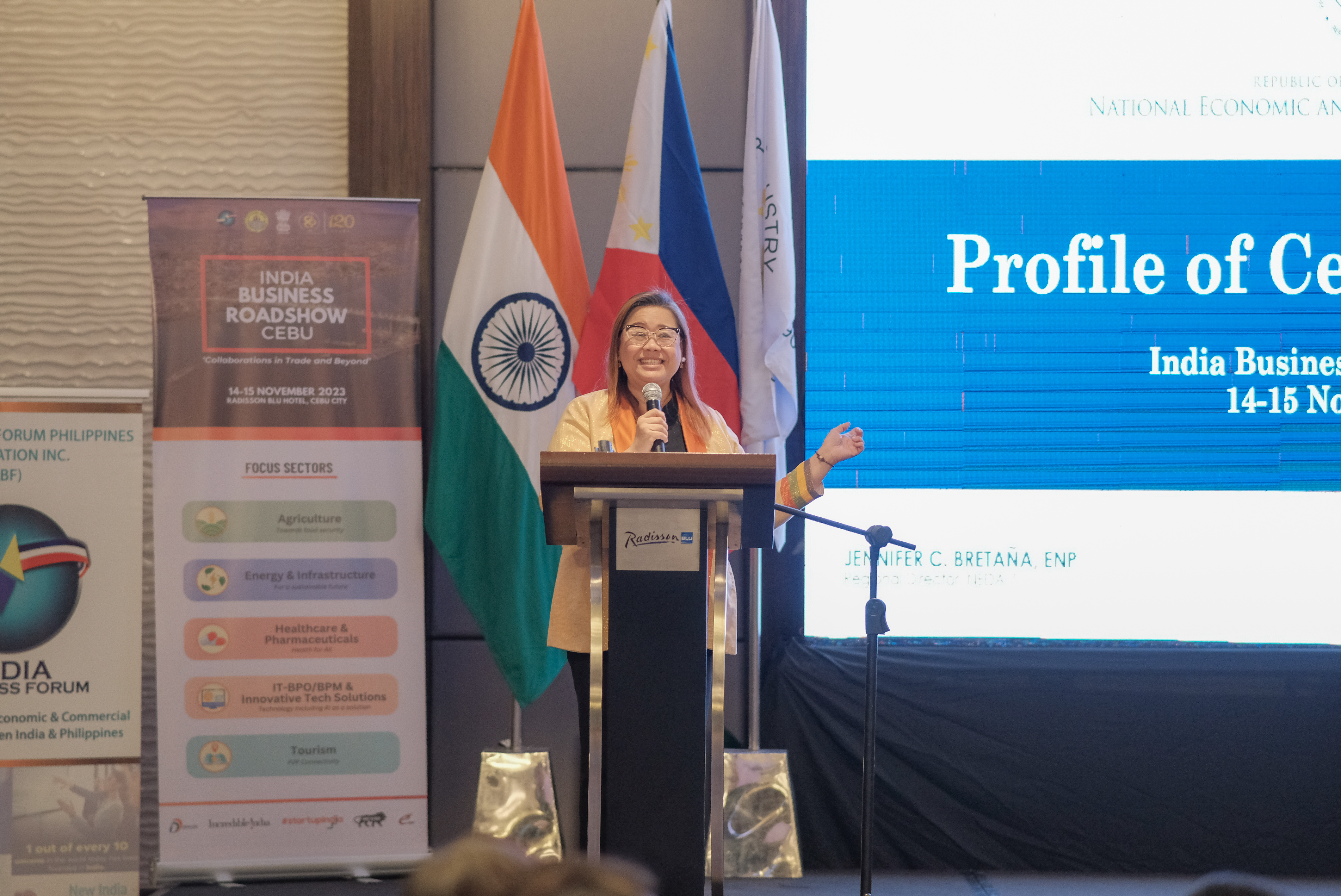 Regional Director Jennifer C. Bretaña of the National Economic and Development Authority (NEDA) – Regional Office VII, India Business Roadshow – Cebu Edition, 15 November 2023.