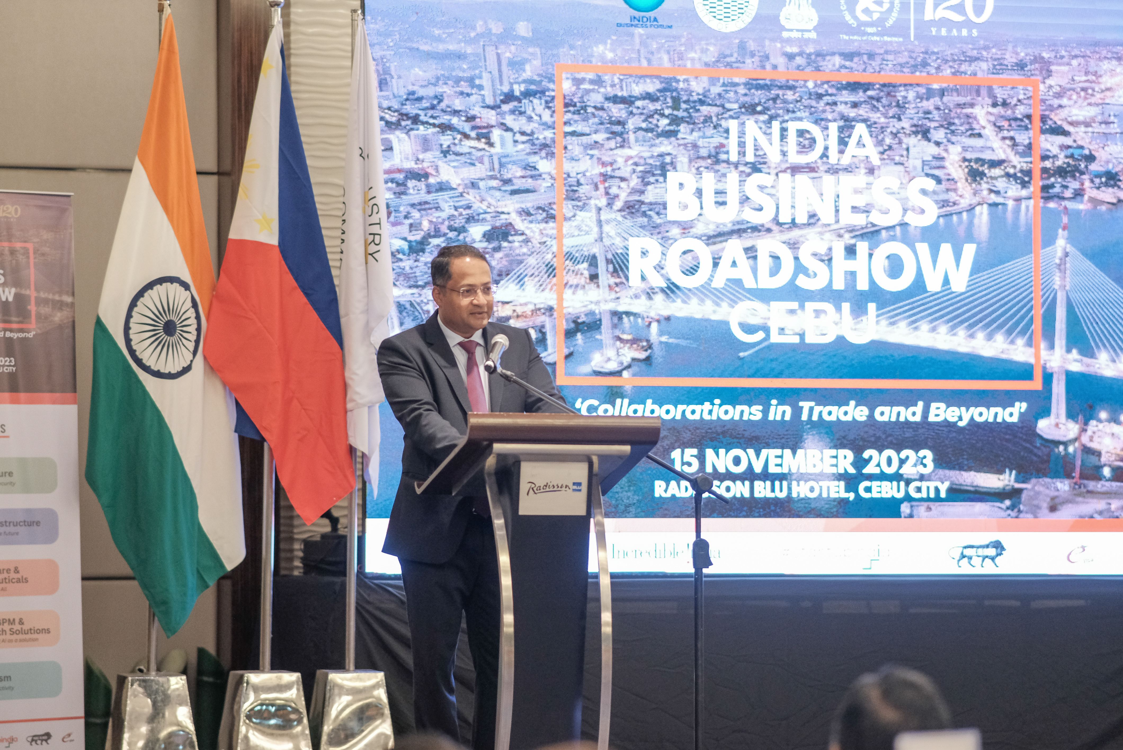 H.E. Shambhu S. Kumaran – Ambassador of India to the Philippines delivering his Keynote Message, India Business Roadshow – Cebu Edition, 15 November 2023.