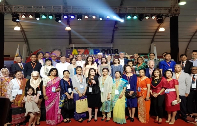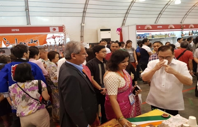 Some glimpses of the International Bazaar 2018.India had 4 stalls featuring Indian masala tea, sweets, luxury Ayurveda products, snacks, costume and jwellery. Besides, there were two foodstalls by Indian restaurants namely Kashmir and Flavours by Vana.Ambassador Jaideep Mazumdar and Mrs. Parvati C. Mazumdar along with the entire Embassy staff participated in the event with great zest and fervour.In pictures, Ambassador is seen with Madame Cielito Salvador Avanceña, DFA Secretary Teodoro L. Locsin Jr., his spouse and Ambassadors of various countries.There was an Indian cultural performance comprising of a classical dance and modern group dance by members of Indian community and their children which was highly appreciated by the visitors.