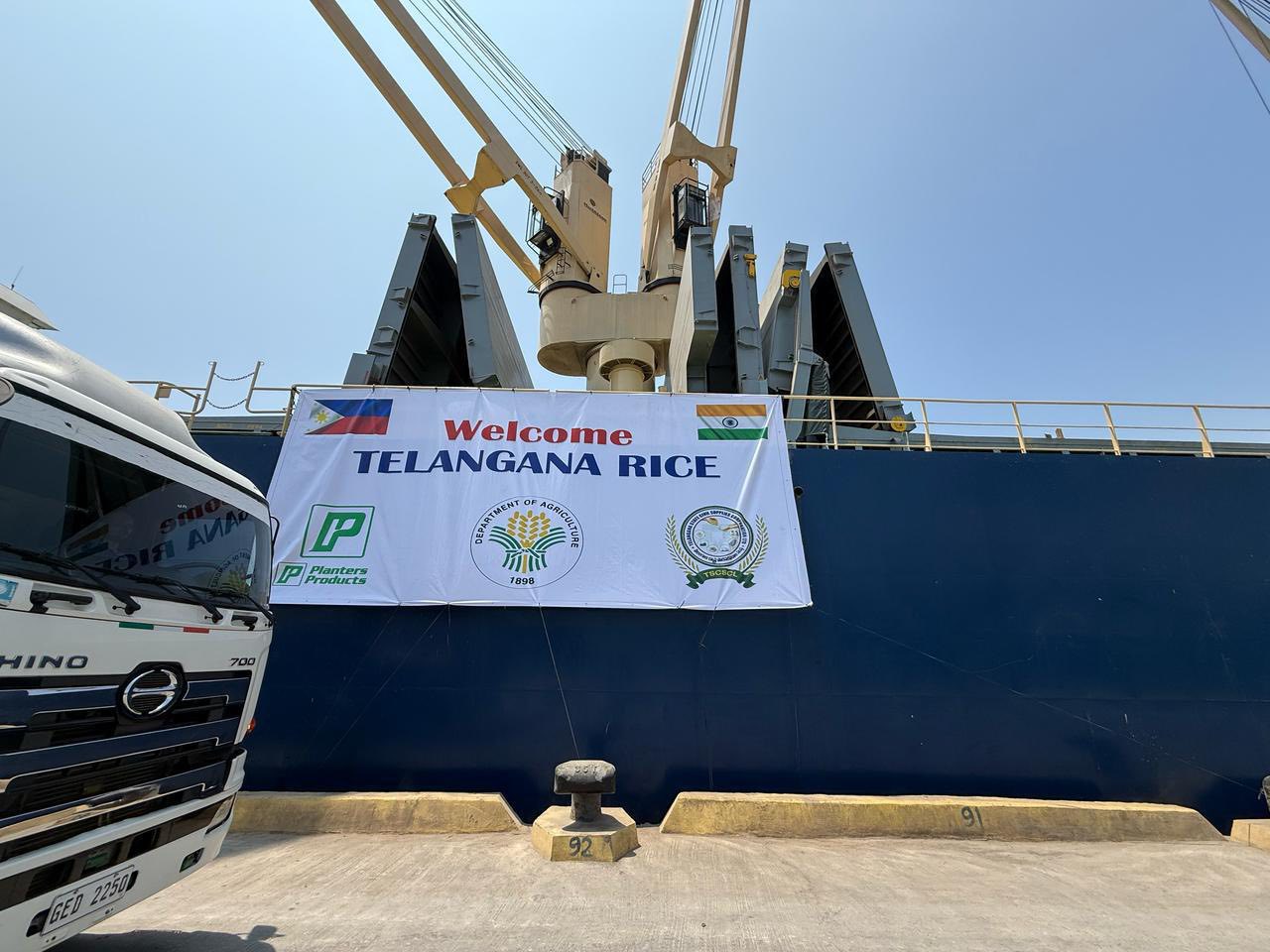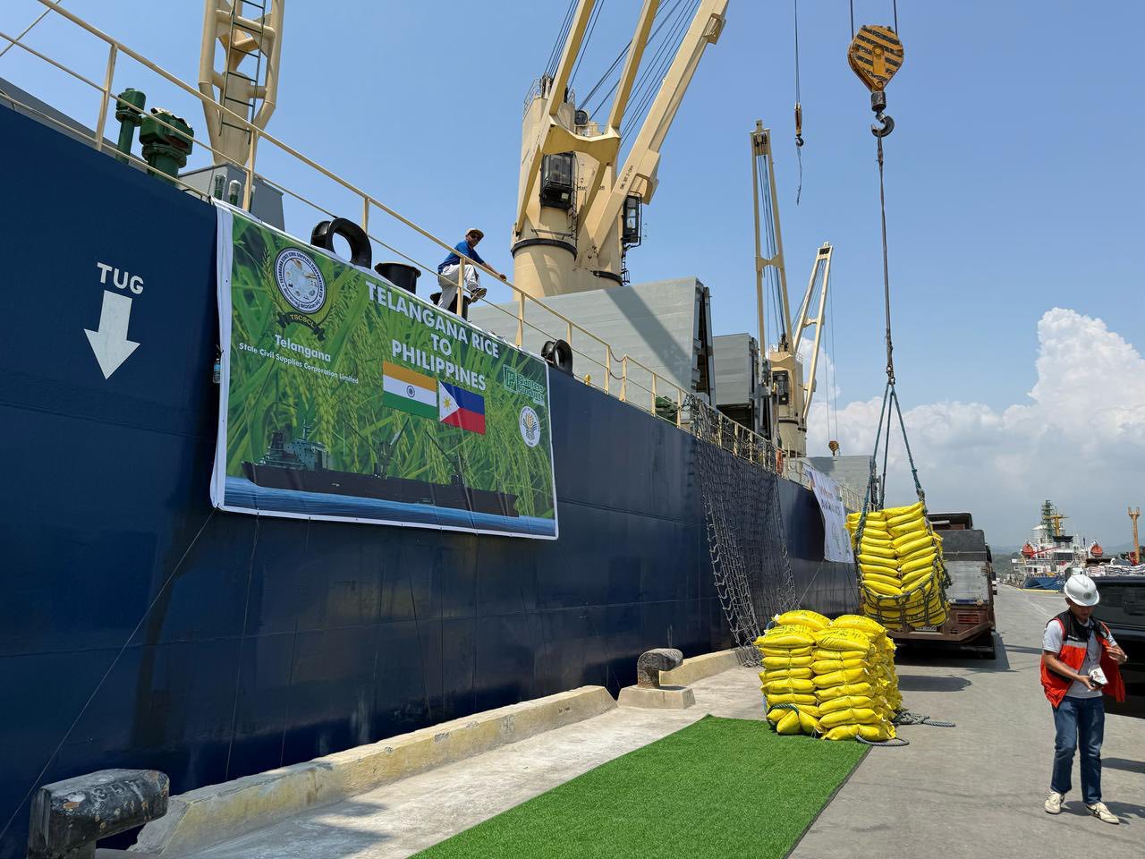 Planters Products Inc (PPI) of the Philippines received a shipment of 12,750 MT of long grain rice from Telangana State Civil Supplies Corporation Ltd. PPI’s CEO and President, Ms. Maria Zenaida B. Angping welcomed the shipment at the Orion dockyard, Bataan on 16 April 2025 along with Mr J C Kandpal, SS(E&C) at the Embassy.