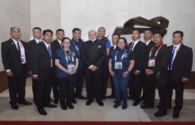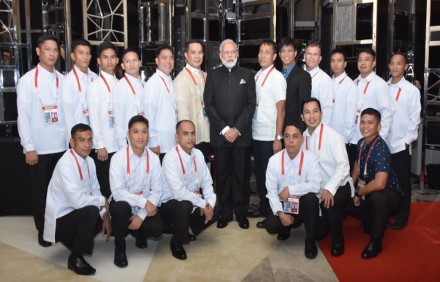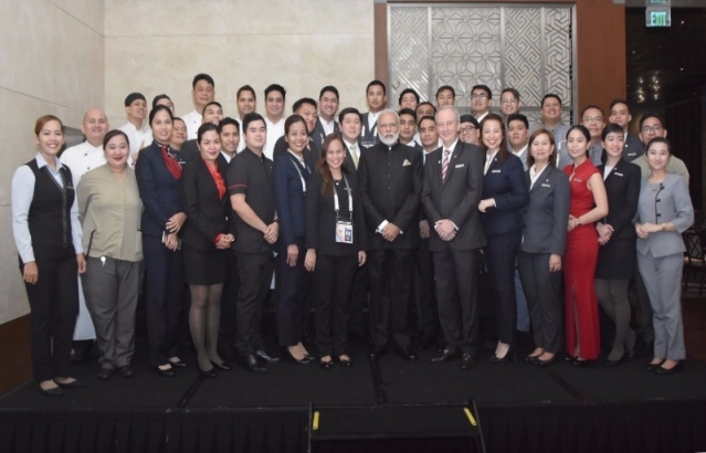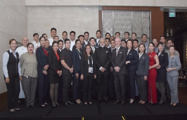 Prime Minister Modi with Embassy of India officials and staff, Presidential Security Group and Marriott Hotel staff