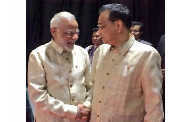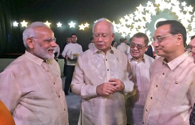 Prime Minister Narendra Modi in conversation with Malaysia's Prime Minister Najib Razak and Chinese Premier Li Keqiang at the Gala Dinner to celebrate the 50th anniversary of ASEAN in Manila, Philippines.