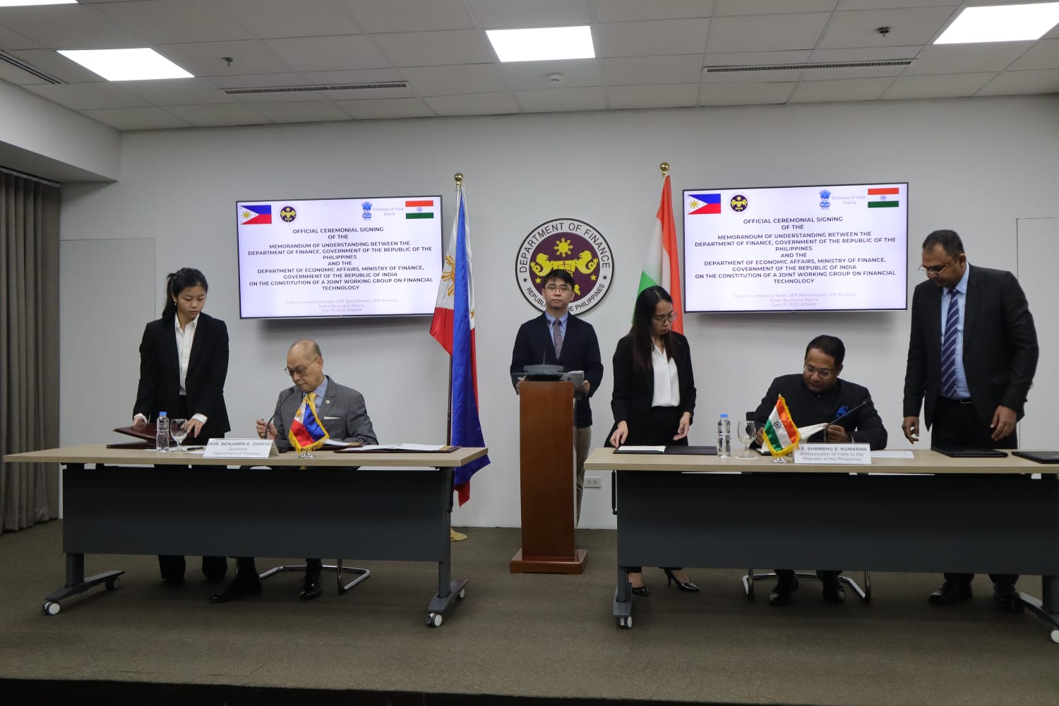 Signing of MOU on Financial Technology Cooperation by H.E. Shambhu S. Kumaran, Ambassador of India to the Philippines, and Secretary Benjamin E. Diokno, Philippines Department of Finance