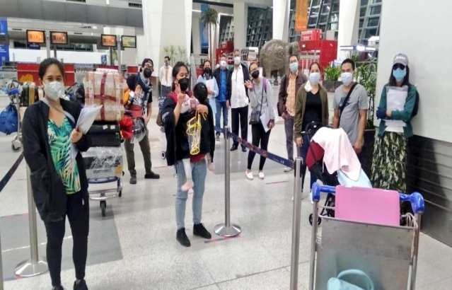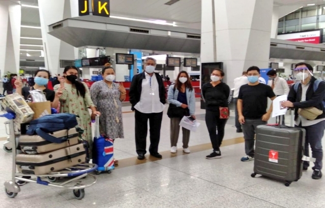Strengthening the bond of Friendship between India and Philippines -Philippines' Ambassador to India H.E Ambassador Ramon S. Bagatsing, Jr. seeing off stranded Filipinos at New Delhi Air Port, bound for Manila by Air India special flight.