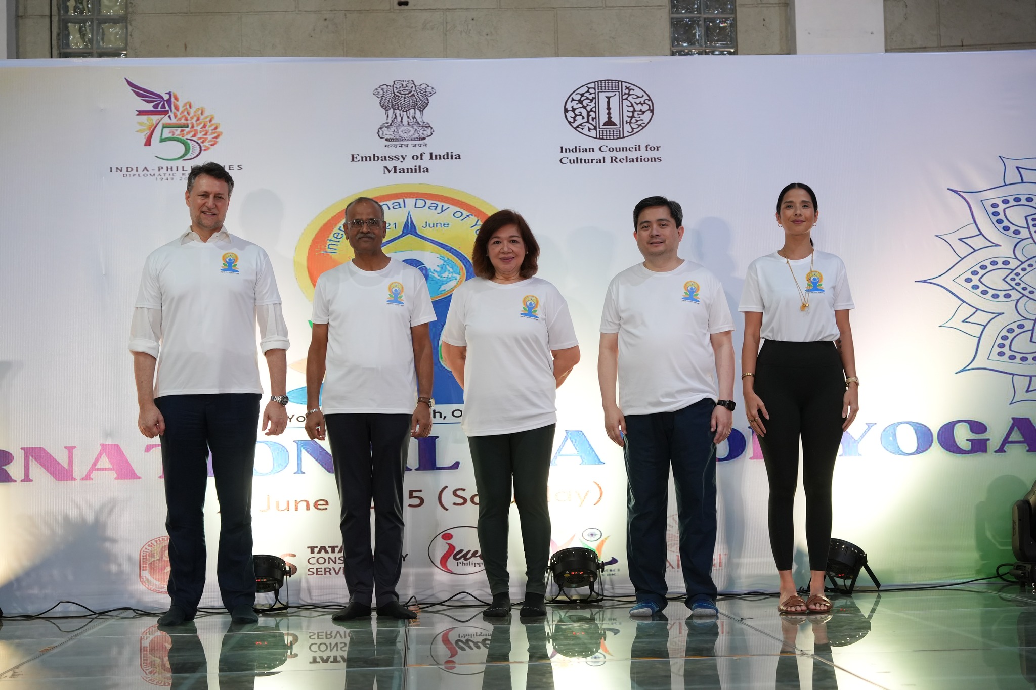 The Embassy of India in Manila celebrated the 11th International Day of Yoga on 21 June 2025 at the University of Perpetual Help System Dalta - Sports Complex, Las Pinas City. H.E. Shri Harsh Kumar Jain, Ambassador of India to the Philippines, H.E. Mr. Aranud Peral, UN Resident Coordinator in the Philippines; Dr. Ma. Teresa C. Iñigo, Director General, Philippine Institute of Traditional and Alternative Health Care; Dr. Anthony Jose Tamayo, President, University of Perpetual Help System Dalta; and Ms. Maxene Magalona, Filipina Actress and Yoga teacher, welcomed and greeted the participants.
