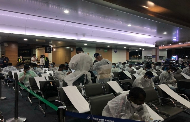 The Embassy of India, Manila facilitated the departure of the first batch of 335 seafarers stranded in Manila to Mumbai on a Charter flight PR8724.