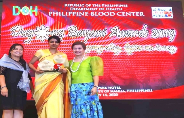 The Embassy of India, Manila is happy to receive the Gawad Juan Luna Award and Gawad Lapu Lapu Award from the Department of Health (Philippines) on 14 February 2020 at the Century Park Hotel Manila for conducting Mobile Blood Donation Activities in 2019. Ms. Nidhi Choudhary, First Secretary (Political & Culture) received the awards on behalf of the Embassy.