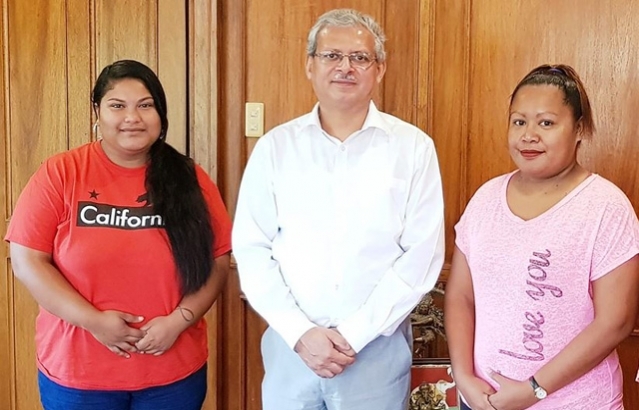 The first two Solar Mammas from the Republic of Palau ,Ms. Iolanny T. Dwight and Ms. Jaelene B. Kebekol visited the Embassy in Manila and met Ambassador Mazumdar on their way to India for a six month course at the Barefoot College at Jaipur, Rajasthan.