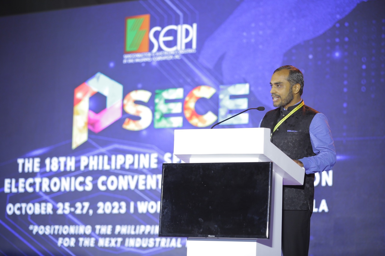 The Head of Economic & Commercial Wing and the Chancery, Counsellor Dr. Sadre Alam delivered his message of support during the 18th Philippine Semiconductor & Electronics Convention and Exhibition Convention Opening Ceremony