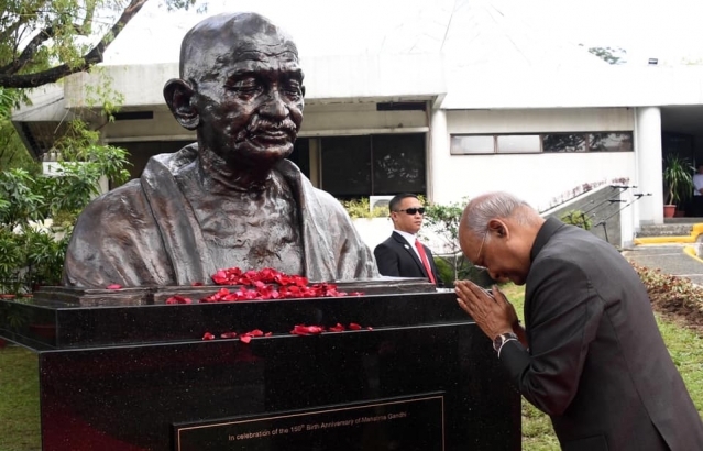 Honoured to unveil Mahatma Gandhi’s bust in Philippines – the land of the brave Jose Rizal. I thank Miriam College for giving a place of respect to Mahatma Gandhi in its campus