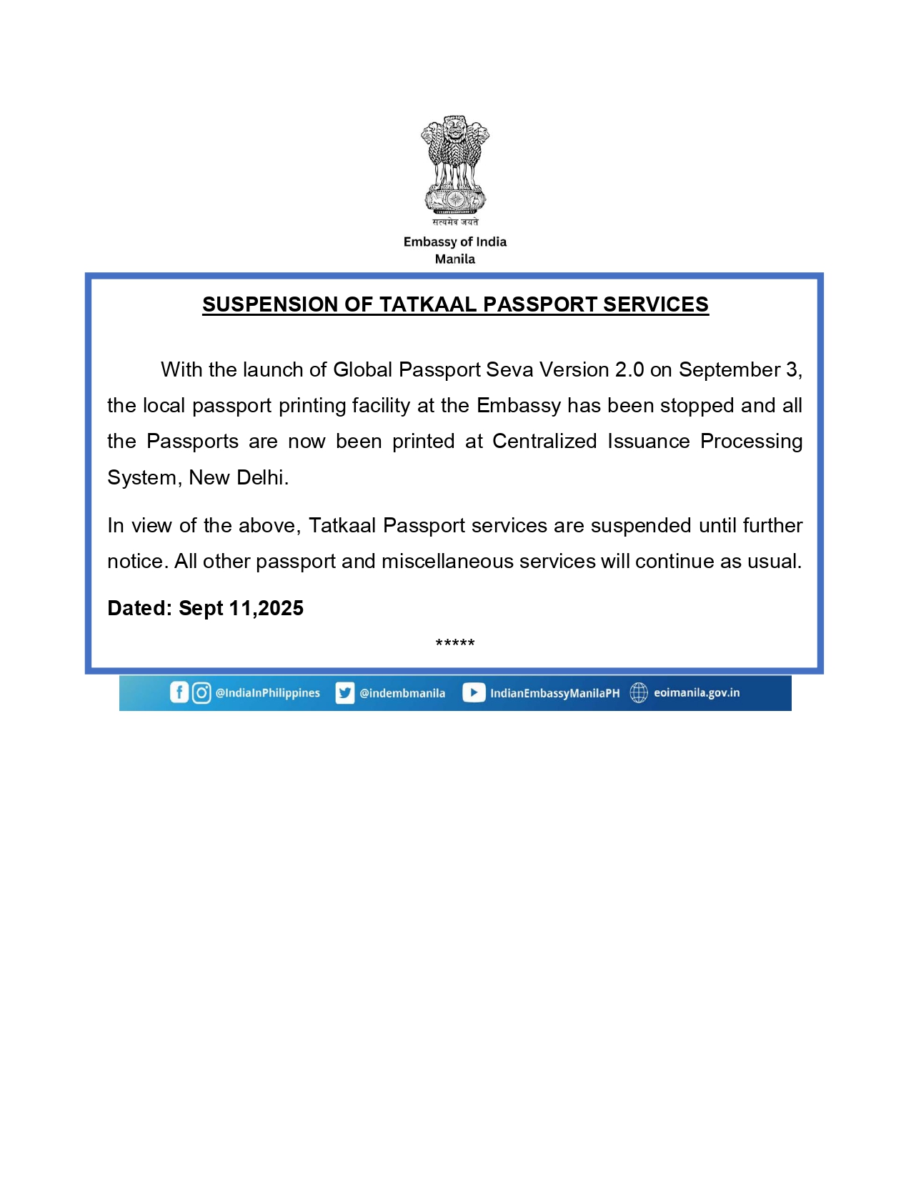 SUSPENSION OF TATKAAL PASSPORT SERVICES