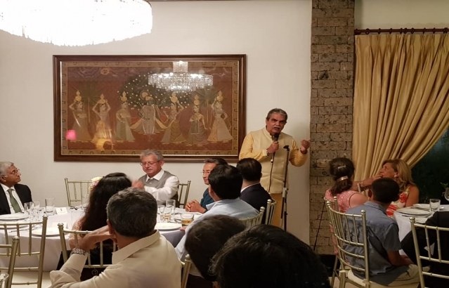 Amb. Jaideep Mazumdar making his opening remarks during a dinner at India House hosted in honour of the Indian Awardees of the 2018 Ramon Magsaysay Awards, Mr. Sonam Wangchuk and Dr. Bharat Vatwani.Various Ambassadors, members of diplomatic and business community, officials of the Government of the Philippines attended the event and interacted with the winners.