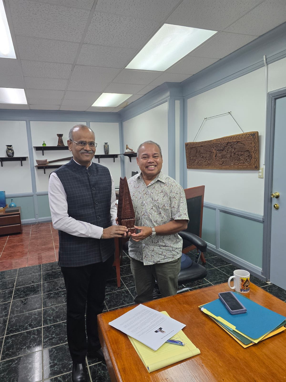 Ambassador Harsh Kumar Jain called on H.E. Mr. Raynold B. Oilouch, Vice President and the Minister of Health and Human Services of the Republic of Palau on 17 April 2025.
