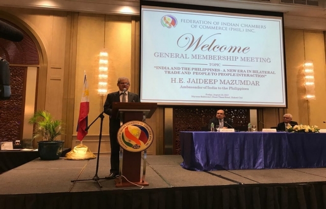 Ambassador Jaideep Mazumdar speaking at FICCI General Membership meeting at Dusit Thani Hotel on 18 August.
