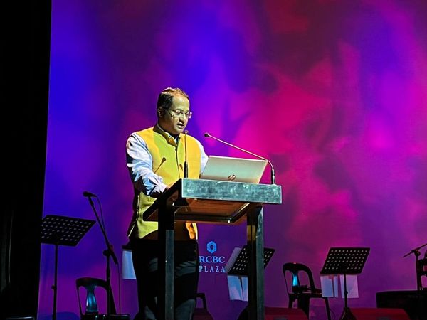 Ambassador Shambhu Kumaran addressed the Musical Soiree Charity Concert Event