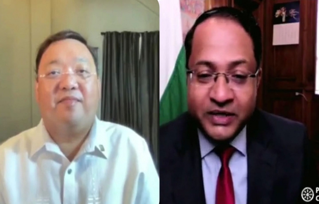 Ambassador Shambhu S. Kumaran with Presidential Spokesperson Harry Roque as a guest at the Press Briefing