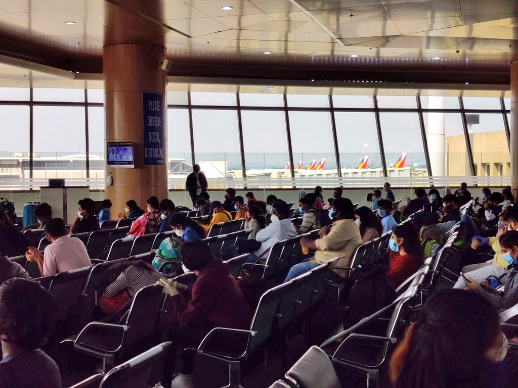 Passengers of Air India AI 1313 bound from Manila to Hyderabad begin their immigration formalities at Ninoy Aquino International Airport in Manila on 25 July 2020.