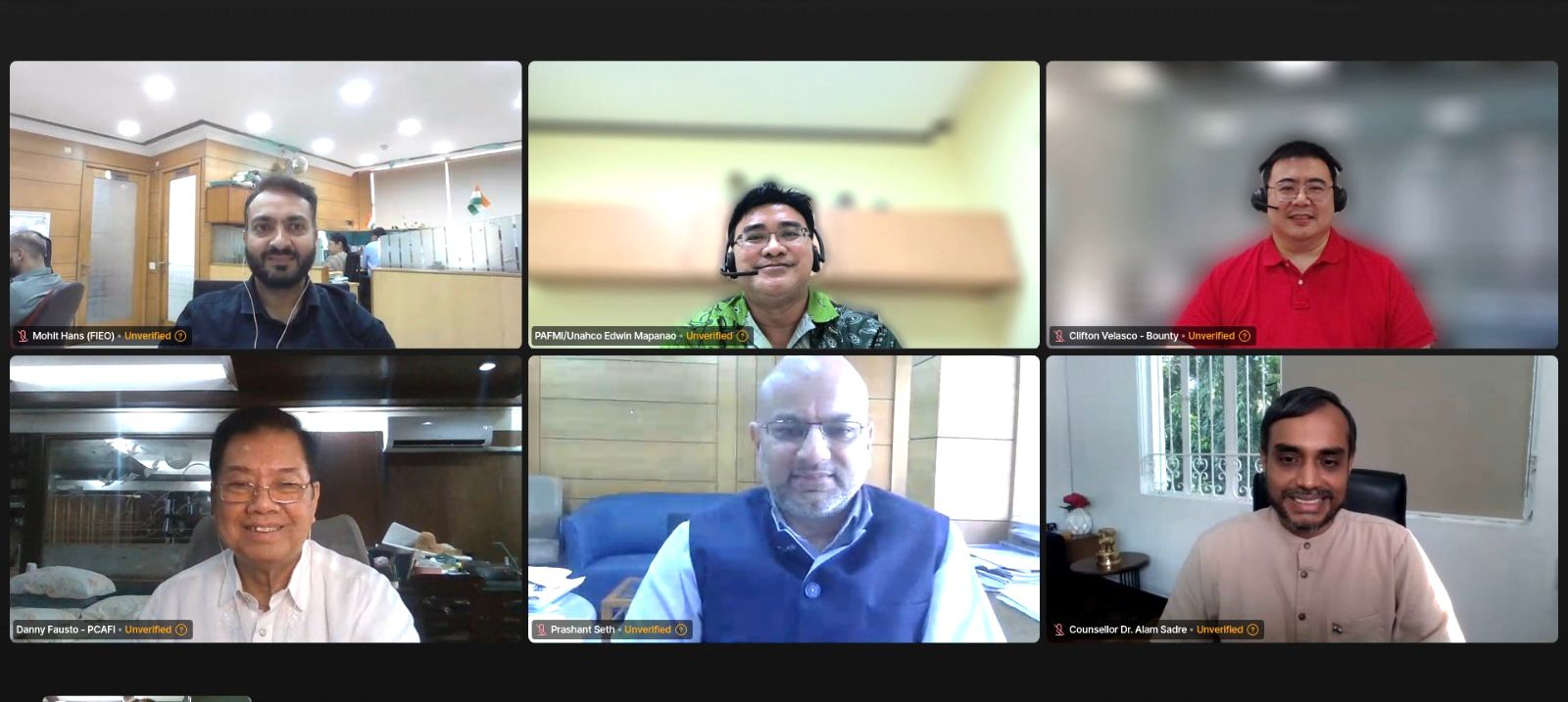 Head of the E&C Wing Counsellor Dr. Sadre Alam convened a virtual meeting between the Federation of Indian Export Organizations (FIEO) (led by Mr. Prashant Seth, Jt. DDG) and the Philippine Chamber of Food and Agriculture Inc. (PCAFI) (led by Mr. Danny Fausto, President) to explore opportunities for mutually beneficial collaboration in the Agri-Food Sector (Virtual, 08 November 2024)