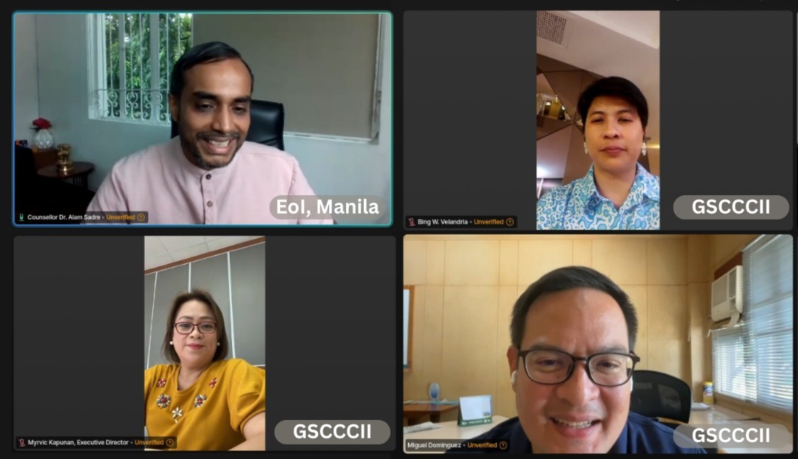 Head of the E&C Wing Counsellor Dr. Sadre Alam met with Mr. Miguel Dominguez, President, General Santos City Chamber of Commerce and Industry Incorporated to discuss and explore opportunities for mutually beneficial partnerships in the business sector (Virtual, 30 October 2024)