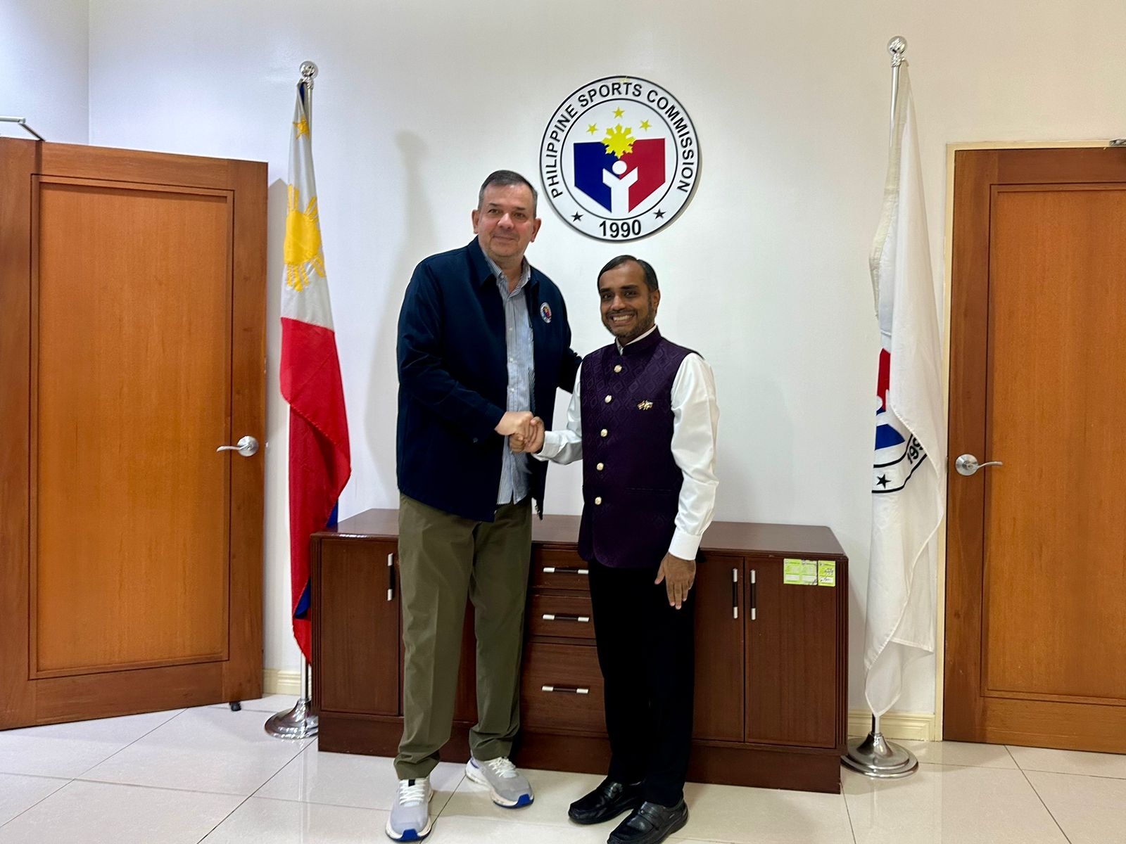 Head of the E&C Wing Counsellor Dr. Sadre Alam met with Mr. Richard Bachmann, Chairman, Philippine Sports Commission, to explore avenues for collaboration in the field of sports. (Rizal Memorial Sports Complex, Pasay City, 13 September 2024)