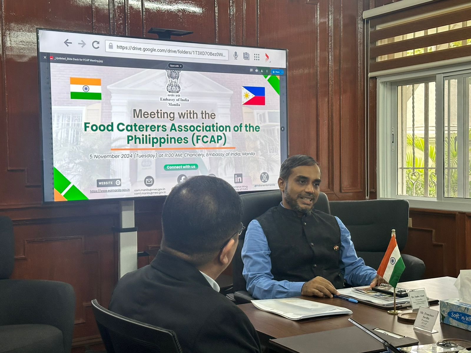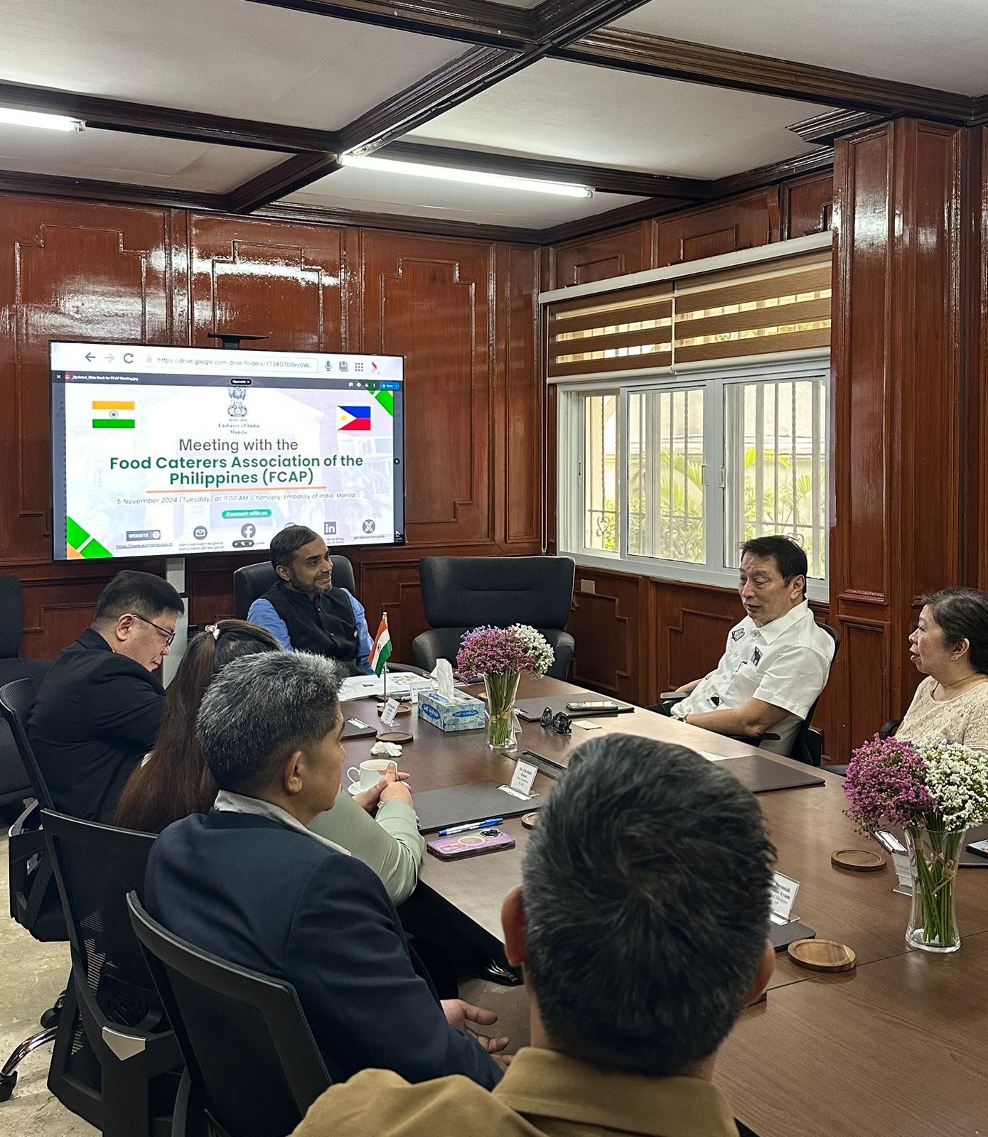 Head of the E&C Wing Counsellor Dr. Sadre Alam met with the Food Caterers Association of the Philippines (led by Mr. Francisco Sevilla, President and Mr. Danny Jacinto, Chairman Emeritus) to explore opportunities for mutually beneficial collaboration in the food and catering sector (Chancery, 5 November 2024)