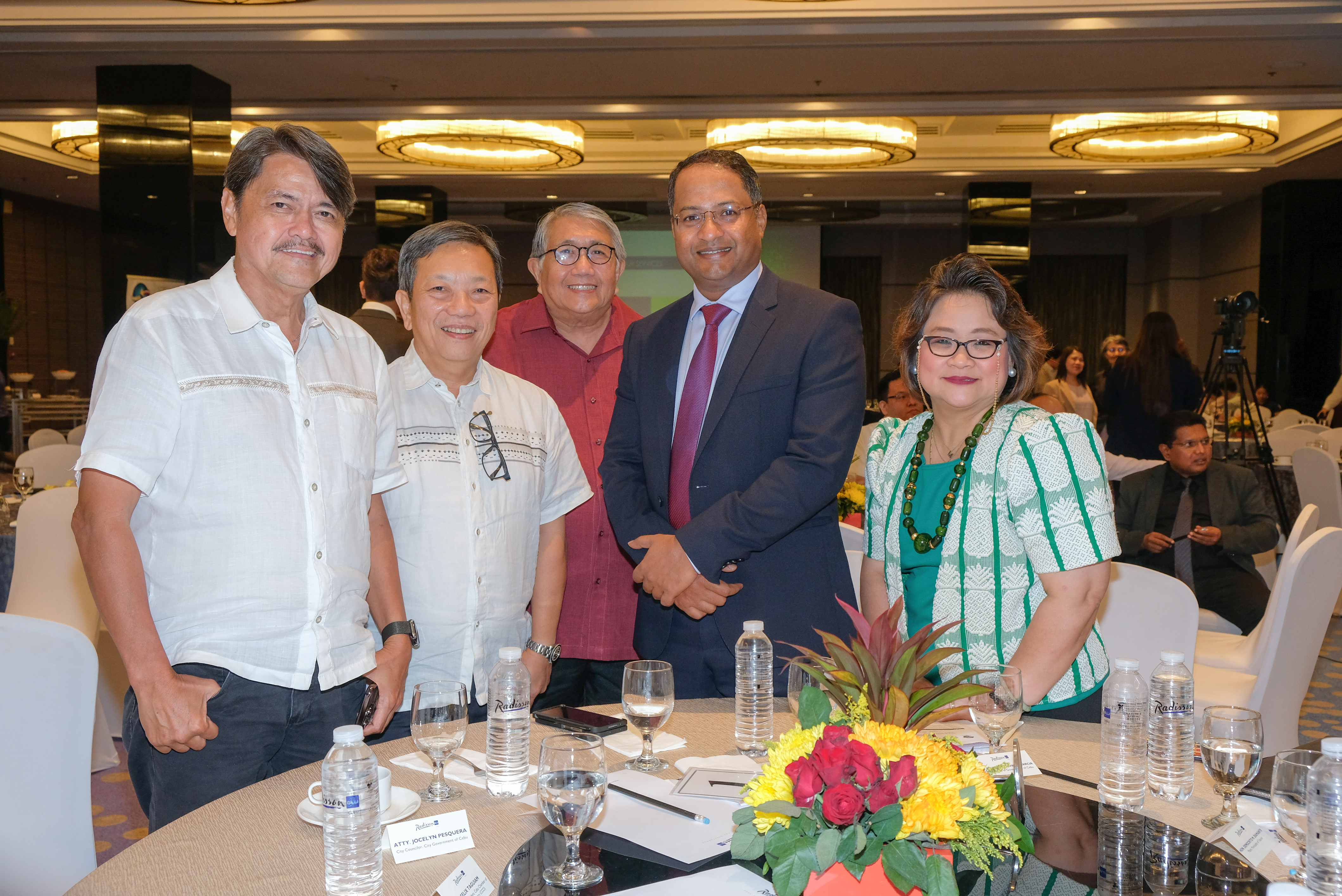From left to right: Mr. Edwin Vincent Ortiz, Immediate Past President Felix Taguiam, and Mr. Mario Panganiban of the Cebu Chamber of Commerce & Industry, H.E. Shambhu S. Kumaran – Ambassador of India to the Philippines, Central Visayas Regional Governor Melanie Ng of the Philippine Chamber of Commerce and Industry.