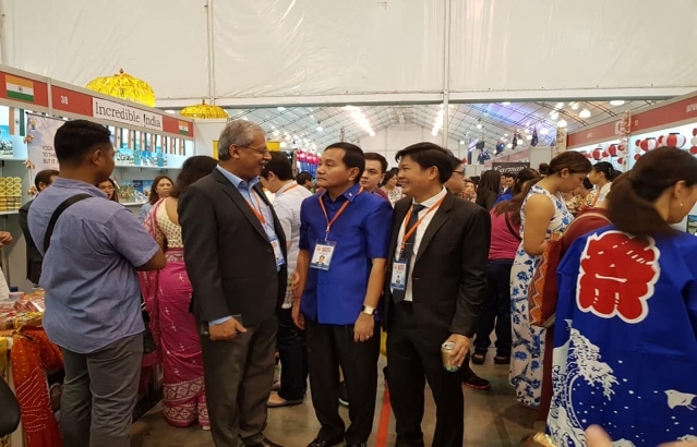 Some glimpses of the International Bazaar 2018.India had 4 stalls featuring Indian masala tea, sweets, luxury Ayurveda products, snacks, costume and jwellery. Besides, there were two foodstalls by Indian restaurants namely Kashmir and Flavours by Vana.Ambassador Jaideep Mazumdar and Mrs. Parvati C. Mazumdar along with the entire Embassy staff participated in the event with great zest and fervour.In pictures, Ambassador is seen with Madame Cielito Salvador Avanceña, DFA Secretary Teodoro L. Locsin Jr., his spouse and Ambassadors of various countries.There was an Indian cultural performance comprising of a classical dance and modern group dance by members of Indian community and their children which was highly appreciated by the visitors.