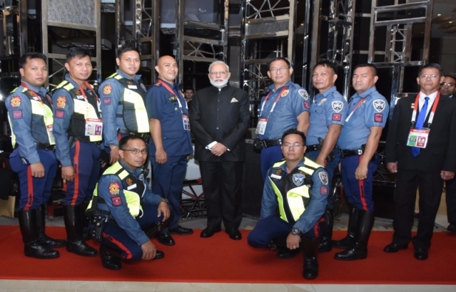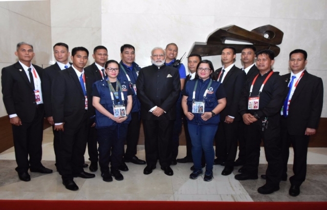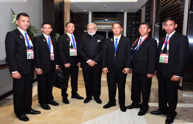 Prime Minister Modi with Embassy of India officials and staff, Presidential Security Group and Marriott Hotel staff