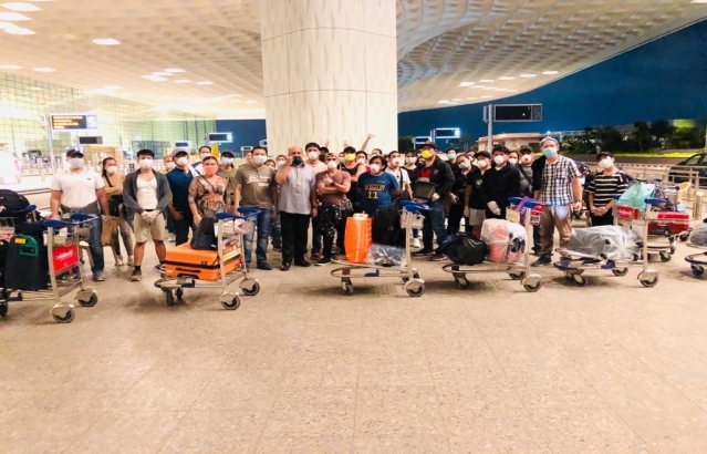 Stranded Filipino Nationals in India board special AI 1322 rescue flight organized by Government of India from Mumbai to Manila.