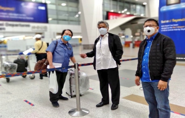 Strengthening the bond of Friendship between India and Philippines -Philippines' Ambassador to India H.E Ambassador Ramon S. Bagatsing, Jr. seeing off stranded Filipinos at New Delhi Air Port, bound for Manila by Air India special flight.