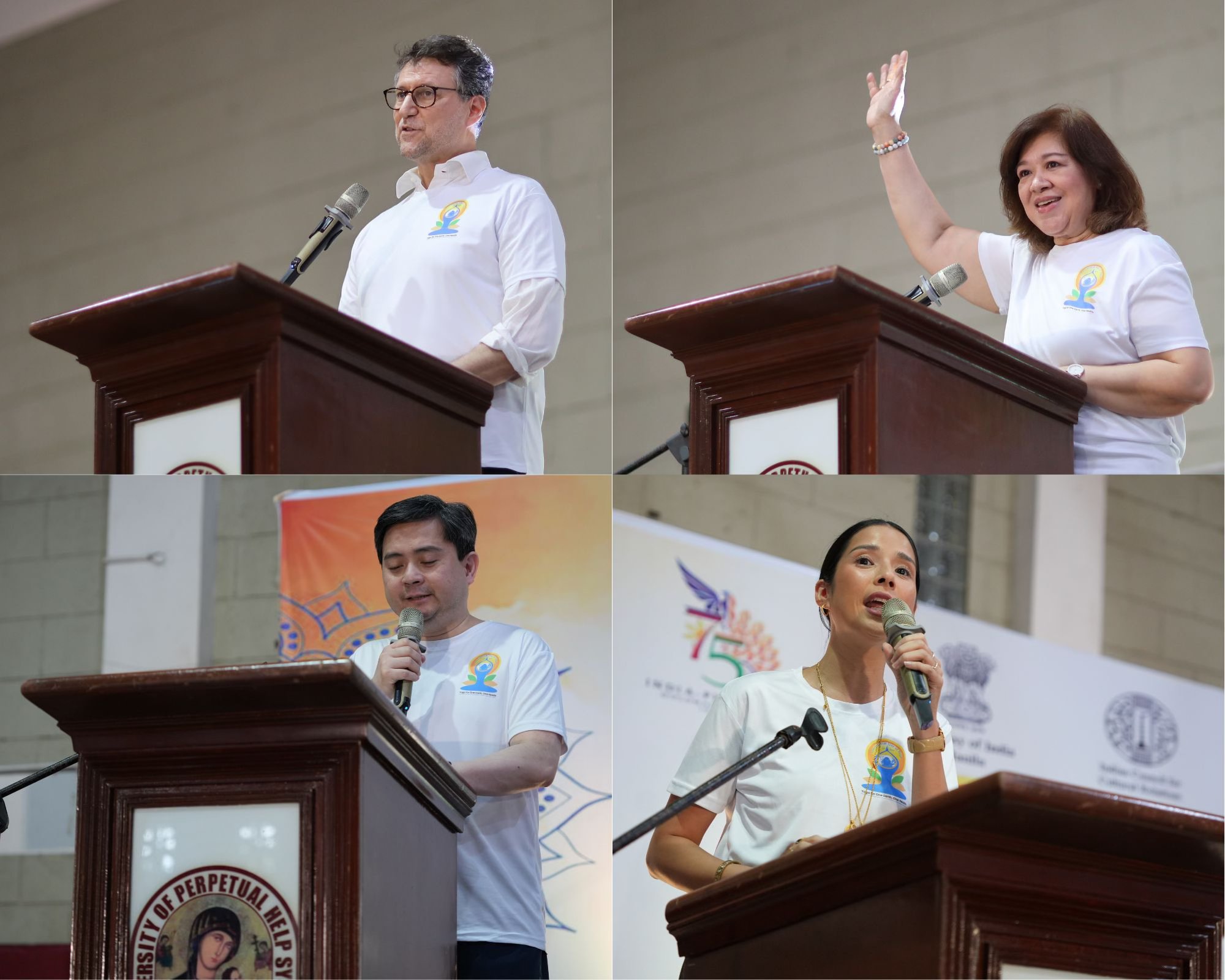 The Embassy of India in Manila celebrated the 11th International Day of Yoga on 21 June 2025 at the University of Perpetual Help System Dalta - Sports Complex, Las Pinas City. H.E. Shri Harsh Kumar Jain, Ambassador of India to the Philippines, H.E. Mr. Aranud Peral, UN Resident Coordinator in the Philippines; Dr. Ma. Teresa C. Iñigo, Director General, Philippine Institute of Traditional and Alternative Health Care; Dr. Anthony Jose Tamayo, President, University of Perpetual Help System Dalta; and Ms. Maxene Magalona, Filipina Actress and Yoga teacher, welcomed and greeted the participants.