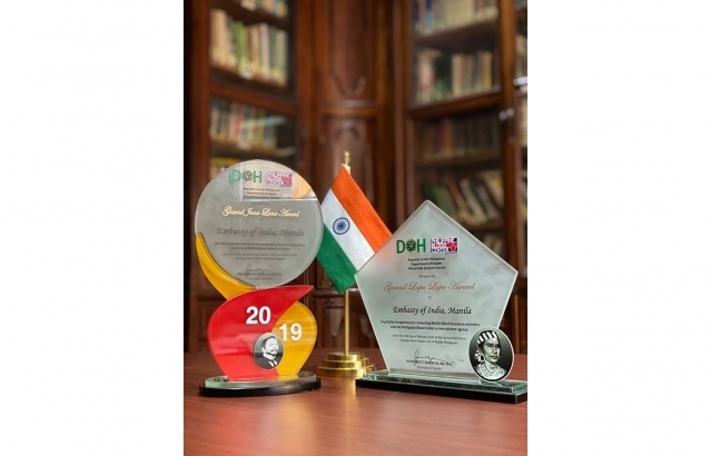 The Embassy of India, Manila is happy to receive the Gawad Juan Luna Award and Gawad Lapu Lapu Award from the Department of Health (Philippines) on 14 February 2020 at the Century Park Hotel Manila for conducting Mobile Blood Donation Activities in 2019. Ms. Nidhi Choudhary, First Secretary (Political & Culture) received the awards on behalf of the Embassy.