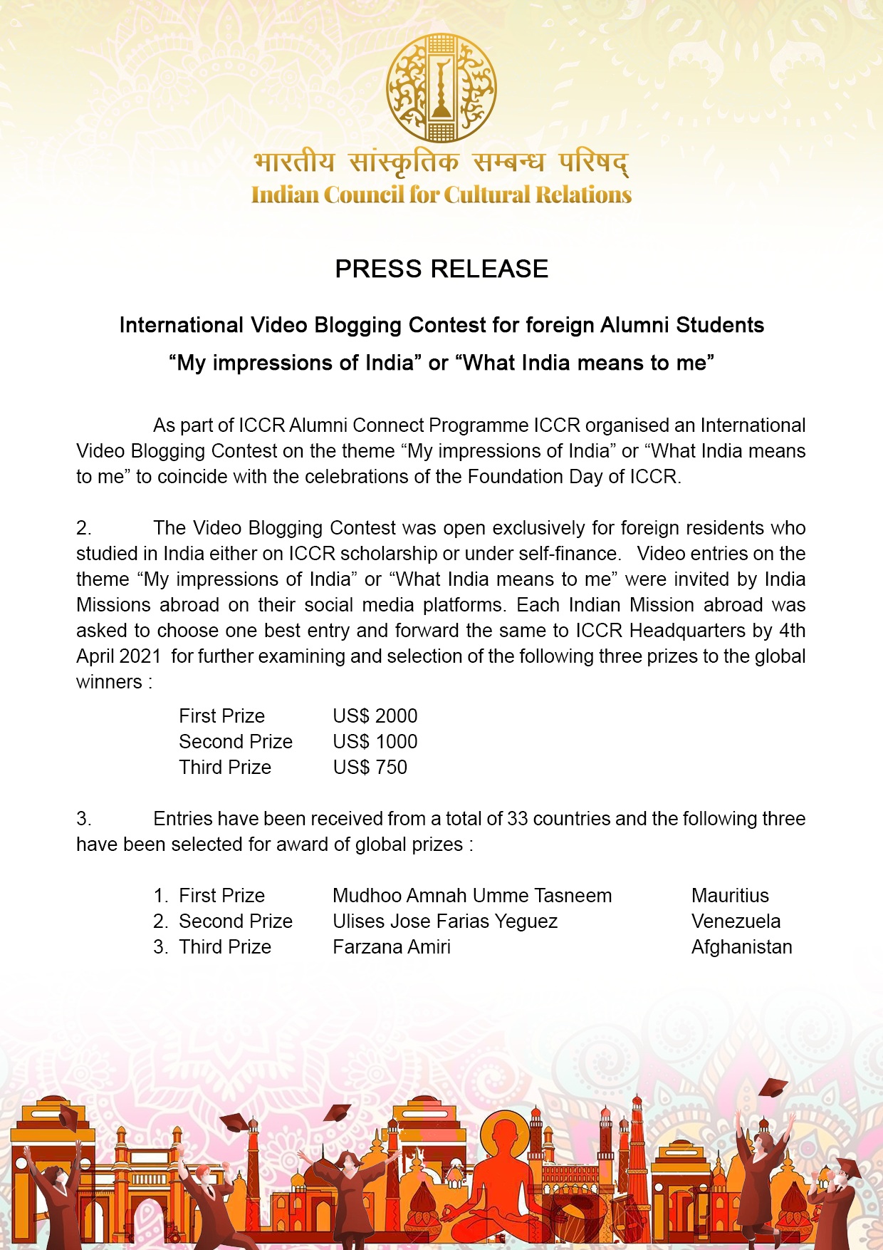 International Video Blogging Contest conducted by ICCR